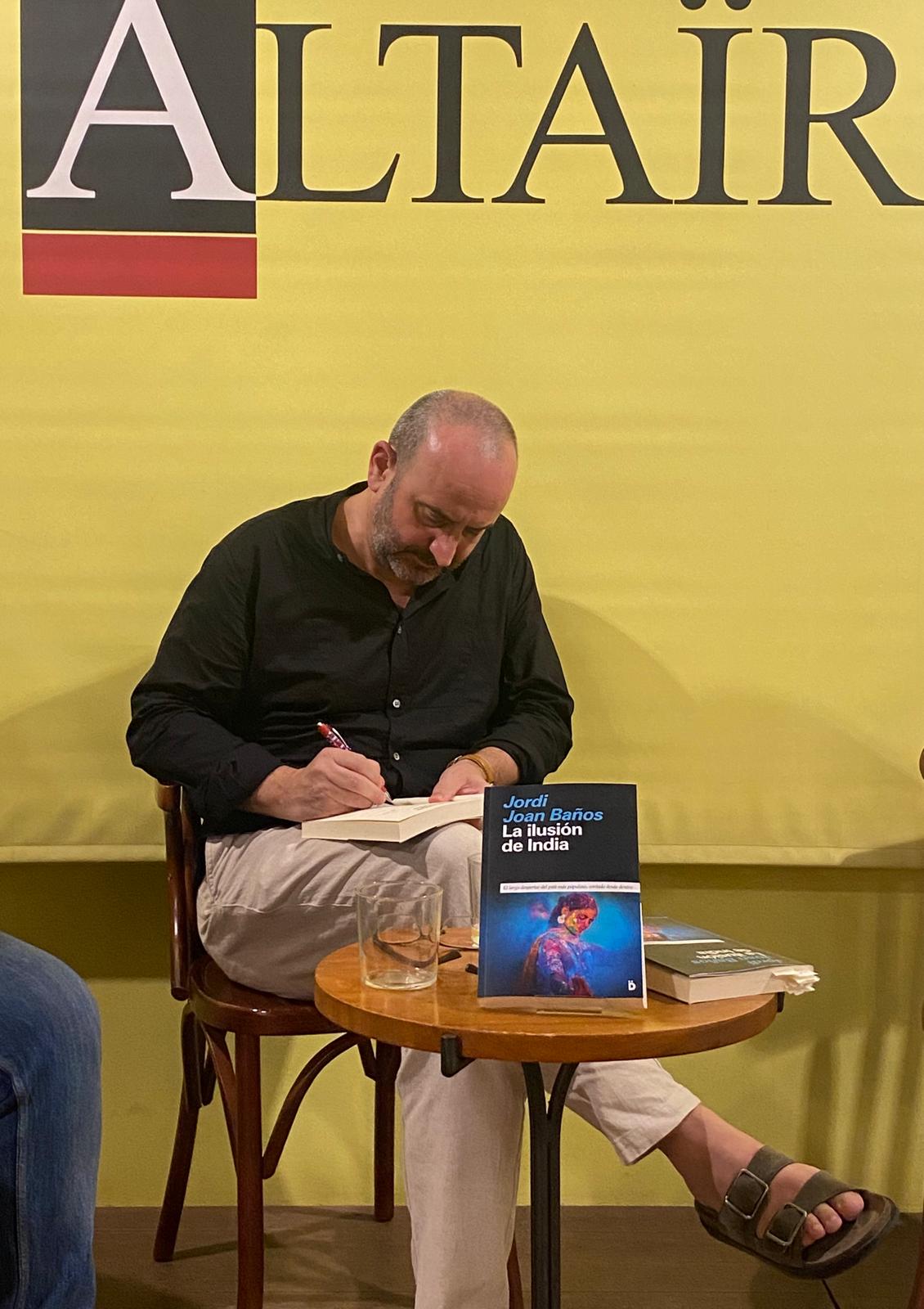 «India es el país más interesante del mundo y el más diverso, pero también es muy susceptible y no nos lo pone fácil a los periodistas». Así introdujo Jordi Joan Baños uno de los países más complejos de todo el planeta, la India, a cuya esencia trata de aproximarse en su volumen de crónicas La ilusión de India, que abarca una década de experiencias como corresponsal y que el jueves 10 de julio se presentó en sociedad en la librería Altaïr de Barcelona. Le apadrinaron dos personajes de excepción, cada uno de ellos representante de la dualidad que alberga el propio Jordi, como periodista y escritor. Ellos fueron el maestro de corresponsales Tomás Alcoverro y uno de los grandes escritores en lengua española de la actualidad, el peruano Santiago Roncagliolo, que también es un gran conocedor de la India. Este último explicó que «es un libro que va entrecruzando historias personales, política, vida cotidiana… es la única aproximación posible». Por su parte, Alcoverro elogió la calidad literaria de las crónicas de Baños, de quien dijo «en la redacción se decía que entregaba tarde sus textos, pero yo le defendía diciendo que eso ocurría precisamente porque cuidaba mucho sus textos». «Este tipo de crónicas tan bien escritas y con valor literario desgraciadamente están desapareciendo de los medios, ya no se hacen», se lamentó el veterano y laureado corresponsal en Beirut.