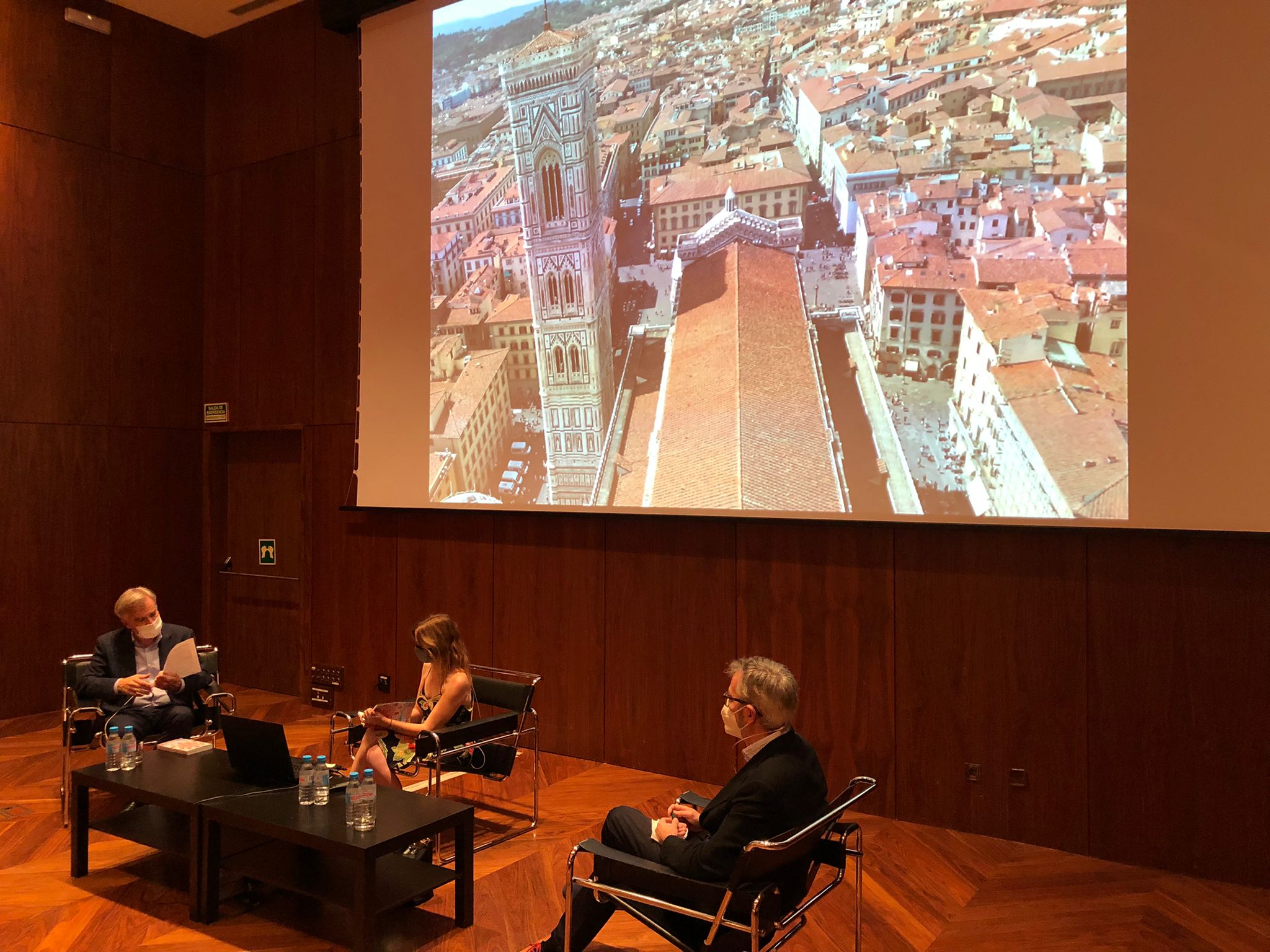 Sílvia Colomé, durante una didáctica intervención en la que habló de algunos de los personajes cuyas huellas sigue en el libro, mostró imágenes poco conocidas -y a veces casi inaccesibles- de rincones de Florencia que aparecen en la obra, explicando a una cincuentena de asistentes cómo recorrió la gran capital del Renacimiento para encontrar las huellas perdidas de Miguel Ángel, Botticelli, Vasari, Ana Maria Luisa de Medici u Oriana Fallaci, entre otros.